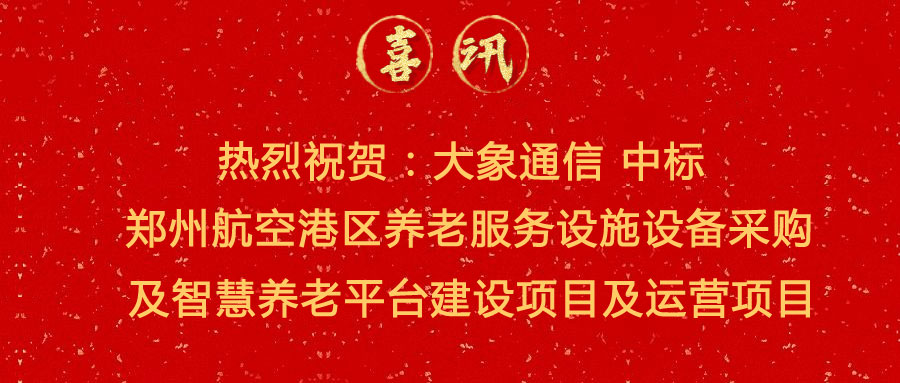 中標(biāo)喜訊 | 熱烈祝賀:大象通信中標(biāo)鄭州航空港區(qū)養(yǎng)老服務(wù)設(shè)施設(shè)備采購(gòu)及智慧養(yǎng)老平臺(tái)建設(shè)項(xiàng)目及運(yùn)營(yíng)項(xiàng)目